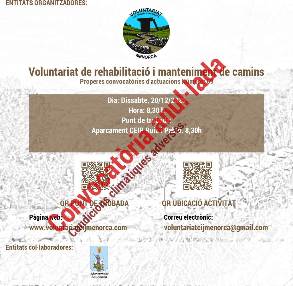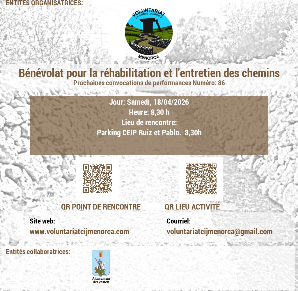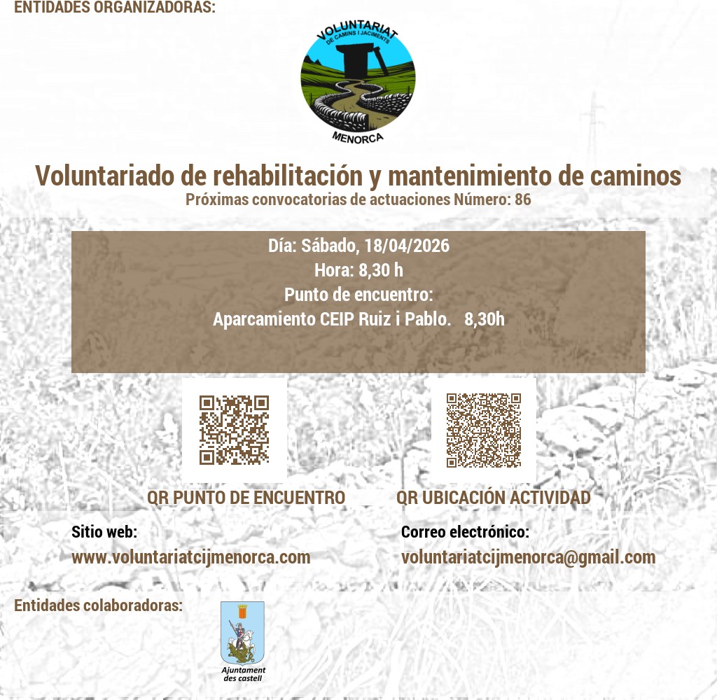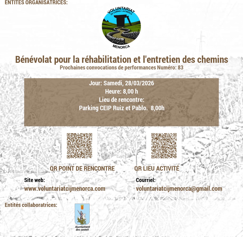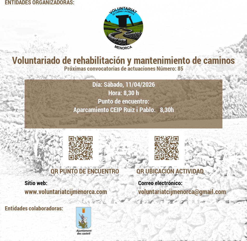 VOLUNTARIAT DE CAMINS I JACIMENTS DE MENORCA Domicili Social:CARRER VICTORI, 52, 07720 ES CASTELL, MENORCA. NIF: G56897317 E-Mail: infocij @ voluntariatcijmenorca.com Lloc Web: www.voluntariatcijmenorca.com