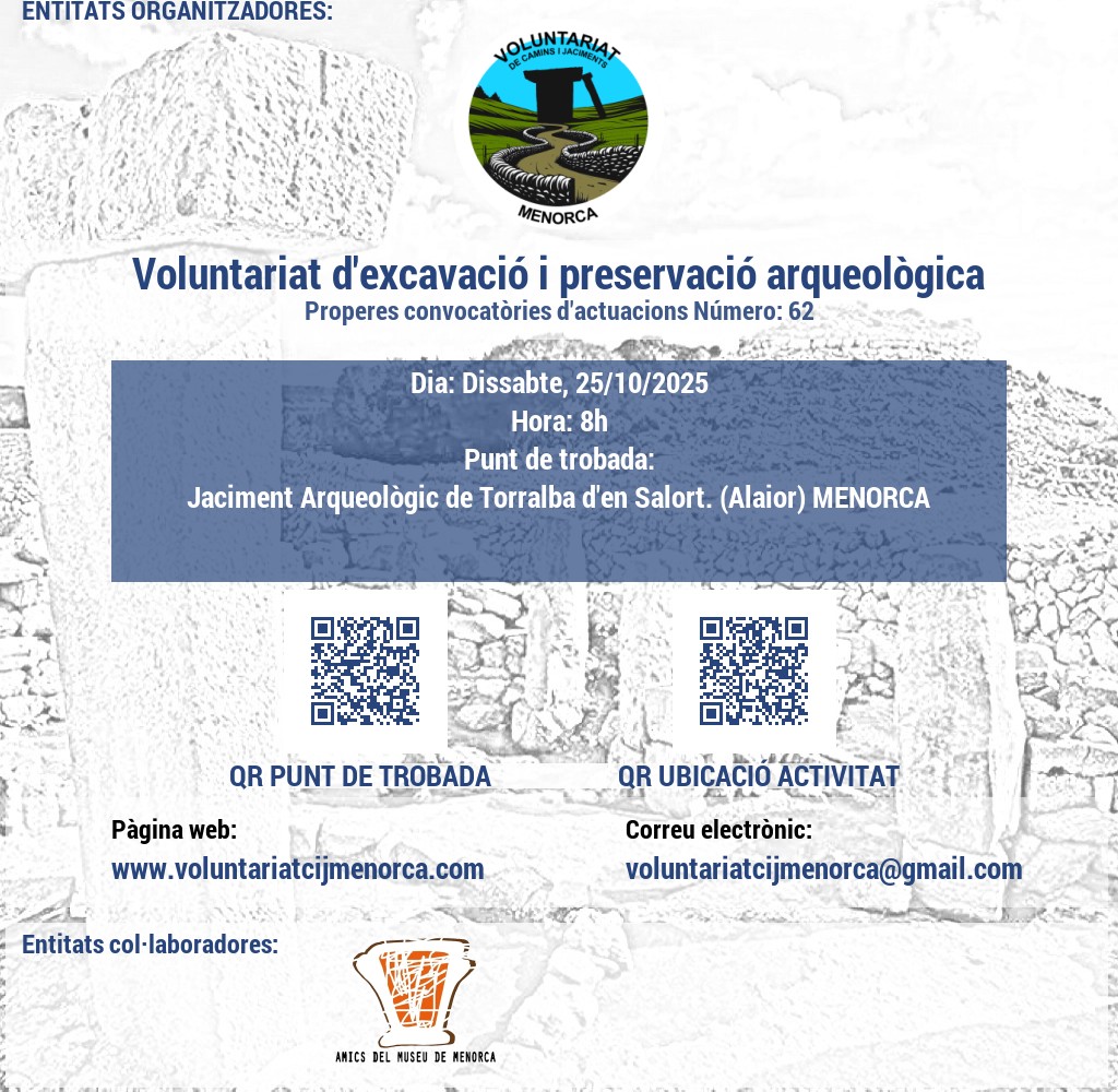 VOLUNTARIAT DE CAMINS I JACIMENTS DE MENORCA Maison Social:CARRER VICTORI, 52, 07720 ES CASTELL, MENORCA. NIF : G56897317 Courriel : infocij @ voluntariatcijmenorca.com Site Internet : www.voluntariatcijmenorca.com
